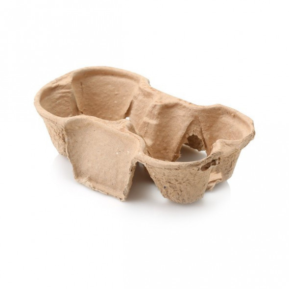 Made from pulped waste paper. Accommodates 2 cups. Recyclable. Unbleached paper.